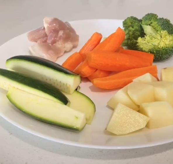 Sve sastojke iseckajte, a zatim stavite da se kuvaju na srednjoj temperaturi. Mi vam preporučujemo kuvanje na pari jer tim putem namirnice zadrže mnogo više hranljivih sastojaka. Ukoliko nemate neki od aparata za kuvanje na pari to možete učiniti uz pomoć dve šerpe, što ćete videti na video snimku.