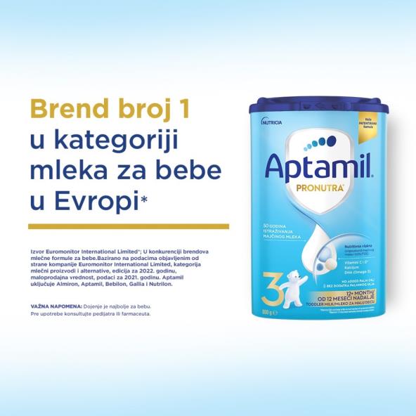 Upravo zbog toga smo izuzetno ponosni što je naš brend Aptamil dobio još jednu potvrdu kvaliteta - istraživanje Euromonitor-a iz 2021, nezavisno istraživanje u Evropi, pokazalo je da je Aptamil "Brend broj 1 u kategoriji mleka za bebe u Evropi*".