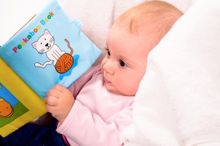 U osmom mesecu, beba se često okreće na oba boka. Dok se oslanja na lakat jedne ruke, drugom se igra. U ovom položaju uvežbava ravnotežu i polako se priprema za sedenje.