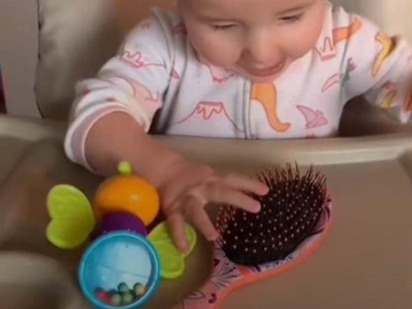 "Ovo je samo podsetnik za praznike koji nam dolaze", poručila je uz snimak na kome se vidi da Lili uzima četku za kosu umesto zvečke, daljinski upravljač umesto plišane igračke i pelenu umesto igračke jarkih boja.