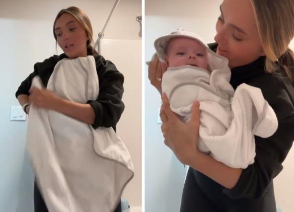 Ako nemate pomoć kada kupate bebu, jedna mlada mama smislila je super trik. Stavila je peškir na sebe, tako što je gornji deo za bebinu glavicu ušuškala u majicu ispod vrata, a krajeve peškira sa strane u trenerku. Mokru bebu je stavila na peškir, a onda je obavila. Jednostavno, bezo, lako i ušuškano - sjajno da i mama i beba bezbrižno završe kupanje.