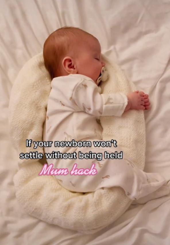 Mama Džesika imala je isti problem dok nije otkrila sjajan trik kako da bebu spusti u krevet nakon što zaspi. "Ako vaše novorođenče neće da zaspi bez držanja, zarolajte ćebe u obliku jastuka za trudnice, i postavite bebu tako da "grli" ćebence", napisala je mama u snimku koji je objavila na TikToku.