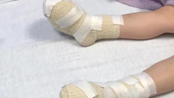 Dok su stigli do bolnice devojčicina stopala već su bila u plikovima, a lekari su joj opekotine zatim očistili, probušili plikove i uklonili izgorelu kožu.