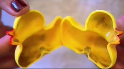 Prvo je mama presekla jednu igračku kako bi pokazala koliko se prljavštine tu zapravo nalazi, pa samim tim i opasnosti po detetovo zdravlje. Ipak, ona je rešila da pronađe način da spreči ovo! Njen savet je da, čim kupimo igračku, odmah lepkom zapušimo rupicu koja se nalazi u njenom dnu. To će sprečiti da se od samog početka igračka prlja iznutra.