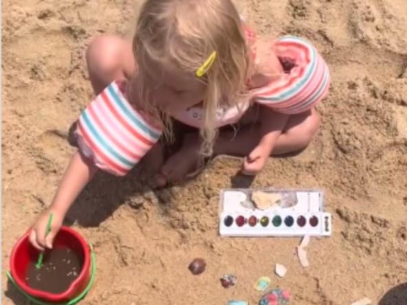 Odlučila je da deci da vodene boje i dala im zadatak da skupe školjke i ofarbaju ih. Deca su oduševljena ovih zadatkom, a mama je napokon odmorila od njihovih prohteva.