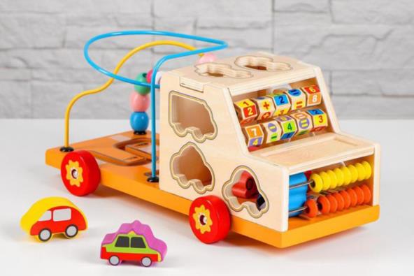 Sa strane postoje rupe u obliku vozila, kao i drvena prevozna sredstva koja mogu da prođu kroz te rupe ako dete uspe da zaključi koji oblik rupe odgovara kom obliku autića. Dakle, primorani su da uključe svoje vijugice ako žele da reše ovaj zadatak, te samim tim možemo reći da ovaj kamiončić utiče na razvoj dečije logike.