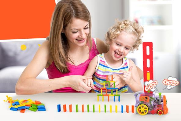 Obradujte svoje dečake i devojčice domino vozićem koji je oduševio decu širom sveta! Jer to nije običan vozić kakav ste do sada viđali, već vozić koji, dok se kreće, za sobom ostavlja domine. Može ih poređati tako da se smenjuju boje jedna za drugom, može ređati najpre jednu a potom drugu boju, sve zavisi kako kako ih poređate u kertridž koji se fiksira na vrh voza.