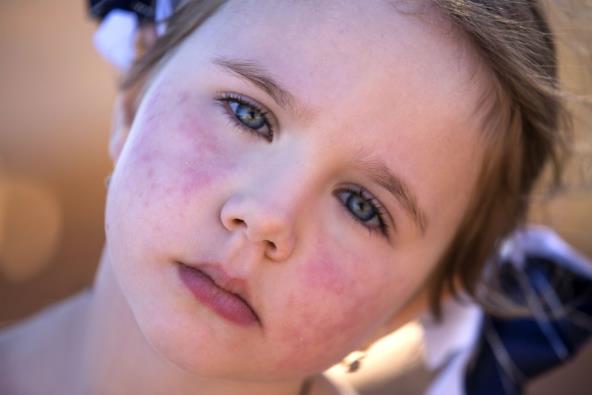 - Jarkocrveni obrazi i osip na licu
