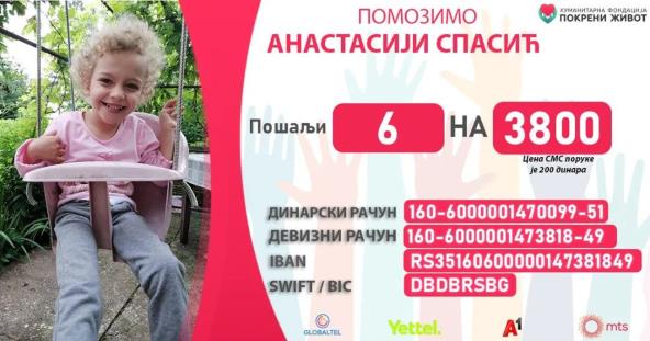 Anastasiji su neophodna novčana sredstva za dalje fizikalne terapije, logopedske i defektološke tretmane, banjska lečenja, ortopedska pomagala kao i za rad sa psihologom i neurologom.