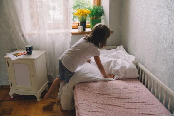 Počnite sa navijanjem alarma pet minuta ranije i polako ih vodite, korak po korak, dok sami ne nauče da upražnjavaju ovu naviku. Fokusirajte se na zabavu! Možete smanjiti broj jastuka i plišanih igračaka na krevetu. Neka sami odaberu omiljene, a ostale spakujte na neko drugo mesto, policu, kutiju. Mogu odlučiti i da svakog dana menjaju igračke koje stoje na krevetu.