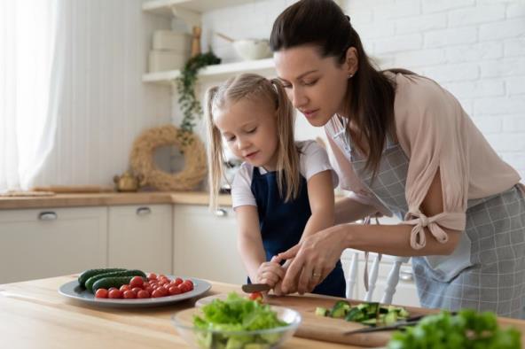 Tipična večernja scena u kojoj se dete igra plastičnim igračkama u vidu kuhinjice i posuđa, dok vi žurite da pripremite večeru zaista je nepotrebna. Štaviše, tada roditelji obično prolaze kroz stres, jer ne uspevaju da spreče povrede tokom igre i slično. Bez obzira na vrstu obroka koji pripremate, možete slobodno uključiti dete u sam proces. Praksa je čak pokazala da deca koja pokazuju izvesne probleme u ishrani u vidu odbijanja obroka ili prejedanja, kada se uključe u pripremu jela uspešno prevazilaze ove teškoće. Razlog zbog kog se to dešava je, nejverovatnije, jer dete postaje aktivno, a do tad je pasivno konzumiralo hranu. Ono sada razmišlja o hrani, oseća mirise dok je sprema i pokreće čitav niz biohemijskih procesa pre nego što okusi hranu. Takođe, deca nešto starijeg uzrasta mogu spremiti salatu, namazati nadeve, aranžirati obroke.