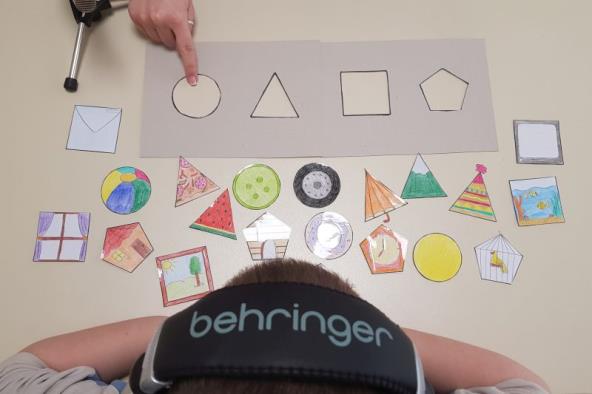 Počinjemo od oblika kruga i trougla koje dete prve usvaja, a za stariji uzrast koristimo složenije oblike. Takođe, vežba može da bude teža ukoliko detetu zadajemo da pronađe prvo nešto oblika kruga, pa trougla a zatim ponovo kruga. Na taj način se vežba auditivna pažnja i radna memorija pored svega navedenog, jer dete mora da zapamti nalog koji ste mu zadali.