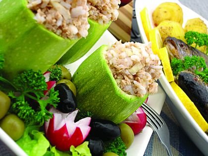 Tu­nje­vi­nu do­bro oce­di­ti od ulja i po­me­ša­ti sa pi­rin­čem, po­so­li­ti i po­bi­be­ri­ti po uku­su. Do­bi­je­nim fi­lom pu­ni­ti ti­kvi­ce i re­đa­ti ih us­prav­no u ke­ra­mič­ku posu­du.