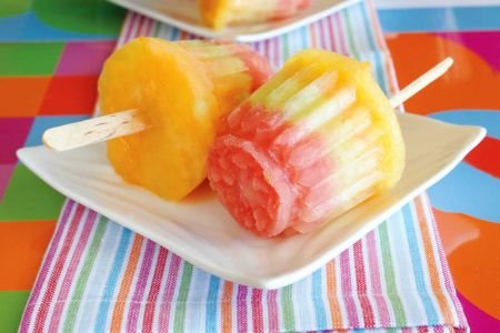 7. Zelenu dinju i sok od ananasa izmiksujte na isti način i sipajte u preostali deo kalupa