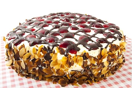 4. Pripremite preliv sa 20 g šećera, pa njime prelijte trešnje. Uklonite prsten za tortu.