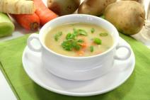 Procediti, propasirati povrće, dodati proceđenu supu i brašno razmućeno u vodi. Posoliti, pa staviti na vatru da provri.