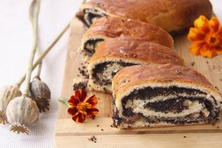 4. Kada testo naraste napraviti 4 loptice i rastanjiti jednu po jednu na debljinu prsta. Filovati hladnim filom od maka pa uvitjati u veknice.