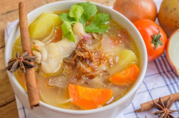 4. Zatim dodati tikvicu i bundevu, dinstati još pet minuta. Uliti pileću supu, staviti pasulj, paradajz, lorber i peršun. Dodati pileće meso u lonac i kuvati još oko jedan sat.