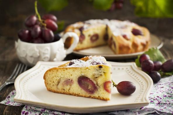 1. U dubokoj posudi zamesite testo od brašna, jaja, šećera i margarina. Postepeno dodavajte mleko dok se ne dobije glatko testo. Pospite grožđe i orahe.