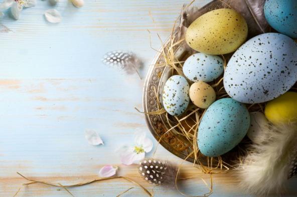 Za plava i zelena jaja koristite odgovarajuće prehrambene boje. U čašu vode sipajte po kap obe boje (ukoliko želite da dobijete tirkiznu boju) i spustite jaja da se oboje, a zatim ih ostavite da se osuše. Slobodno se igrajte količinom boje koju dodajete kako bi dobili jaja različitih nijansi.