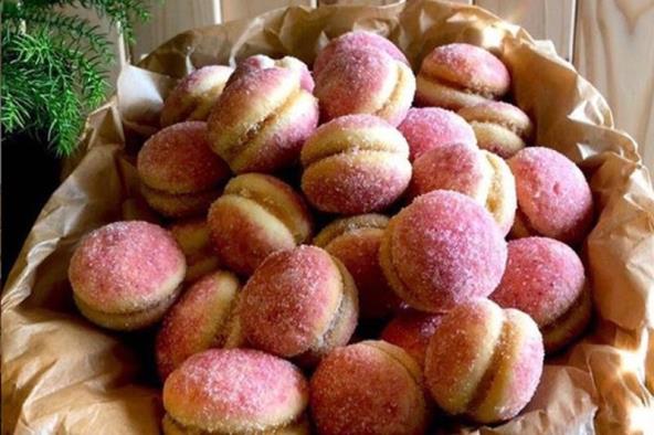 Od ostataka mrvica, marmelade i oraha puniti polovice i spajati.