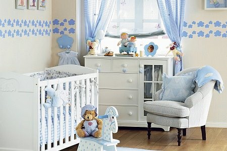 Tako možete nacrtati plave oblačiće na sredini zida, izabrati plave jastučiće, zavesu, ramove za slike, posteljinu... Čak će i plišane igračke u odeći plavih tonova uneti bitnu razliku i obojiti prostoriju dinamikom.