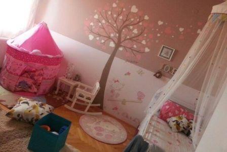 Dok je Ema bila još u mom stomaku, uživala sam gledajući sličice dečijih soba u raznim čaopisima i po sajtovima, pa sam i sama poželela da joj napravim divan kutak kao dobrodošlicu. Jedna od želja mi je bila da nađem sličicu savršenog drveta koje bi nacrtali na zidu. Uz pomoć drugarice, i malo boje za krečenje, nastalo je Emikino drvo.
