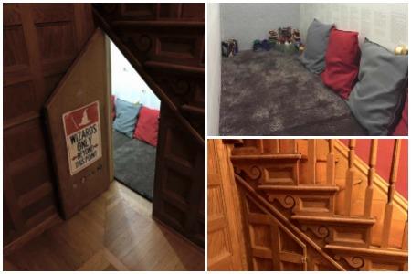 Kada je jedna bibliotekarka, Kortni Benet, prvi put zakoračila u svoj novi dom u junu ove godine, ona je inspirisana ovim filmovima, tačno znala šta će uraditi sa vitrinom ispod stepeništa. Baš poput sobe za Harija Potera, u kojoj je on proveo svoje detinjstvo, Kortni je želela da svojoj deci i sebi podari jedno magično, možda čak i tajno mesto.