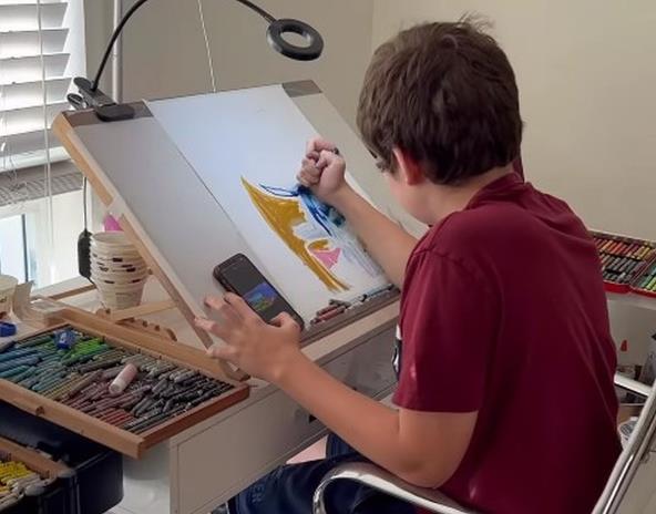 Kada su mu roditelji dali papir i boje, kako sami navode, rezultat je bio čudo na papiru. "Ono što je takođe neverovatno je kako bez napora, skoro automatski, on pravi poteze i bira boje bez oklevanja ili razmišljanja."
