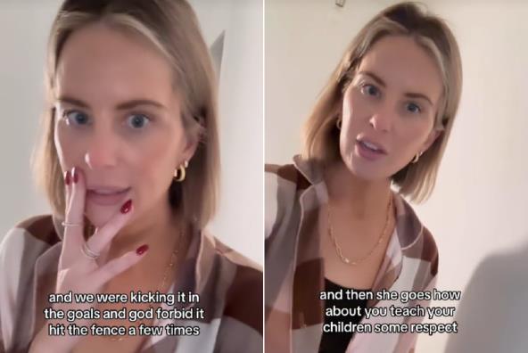 Ona je na TikToku ispričala da je komšinica vikala na nju preko ograde jer su ona i njen petogodišnji sin šutirali loptu u svom dvorištu, a lopta je "nekoliko puta pogodila u ogradu".