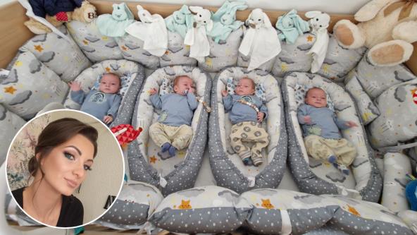 "Najteži je bio sam taj proces adaptacije da su sada četiri bebe u kući, da sve treba da jedu i spavaju u isto vreme. Jako smo se trudili da im uspostavimo istu rutinu da bi nam svima bilo lakše. To nam je jako značilo od početka i sad nam znači. Grčiće smo prebrodili još dok smo bili u bolnici, a sa zubićima dosad nismo imali većih problema, kada izbijaju budu nervozni dan-dva i to je to. Ja sam se brzo i lepo oporavljala od postpartuma, dosta mi je pomagalo jer su bebe stvarno bile u ritmu, bukvalno mesec dana nakon dolaska kući počeli su da spavaju celu noć. Nekada imam osećaj da i oni znaju da ih je četvoro, pa nisu toliko prezahtevni. Naravno, ima dana i sada kada nam bude jako teško i mi smo svesni da će pred nama konstantno biti izazovi, ali uz međusobnu podršku i podršku porodice nadamo se da ćemo ih savladavati u hodu".