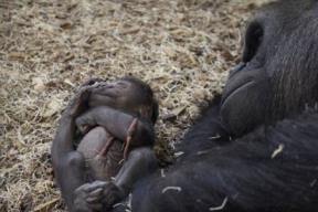 Neodoljiva igra gorile i njene novorođene bebe (VIDEO)
