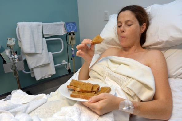 Za sada, praksa je da se porodiljama daje samo voda tokom porođaja jer postoji strah da bi žena mogla da udahne jako i da hrana ode u pluća.