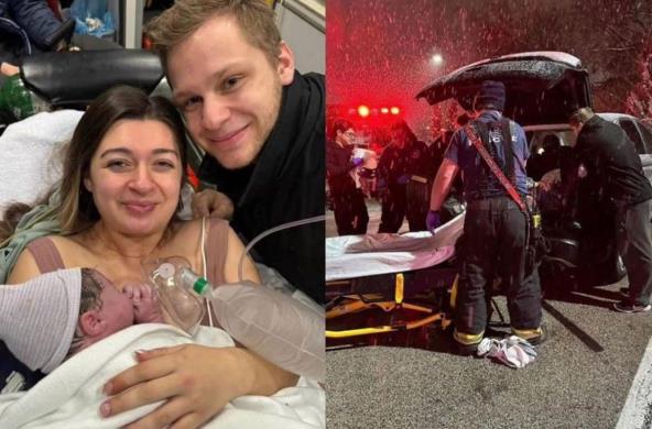 Analisija (25), koja živi u Viskonsinu, SAD, bila je na putu za bolnicu usred snežne oluje, kada je shvatila da neće stići na vreme. Poriv za guranjem postao je prejak i ona tvrdi da se osećala kao da sedi na glavi svoje bebe, pa je njen muž stao, dok su se vozili ka bolnici.