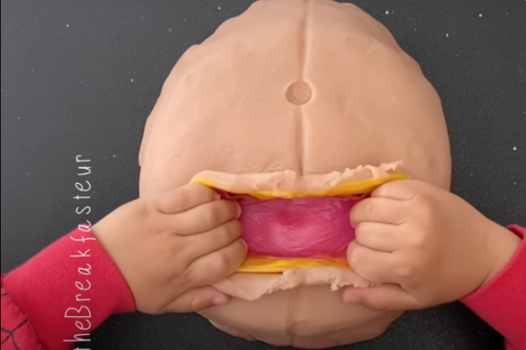 Uz pomoć testa za igru ona je rekreirala trudnički stomak sa svim detaljima, a onda je zajedno sa sinom vršila 'porođaj' igračke Spajdermena.