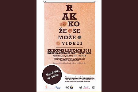 Euromelanoma dan obeležava se 13. maja 2013. godine pod sloganom "Ugledajte, sprečite!". Godišnja kampanja koju organizuju dermatolozi, usmerena je na podizanje svesti o opasnostima raka kože i značaju rane dijagnoze. U toku ove nedelje će se održati besplatni skrining pregledi u državnim klinikama i bolnicama, kao i mu privatnim dermatološkim ordinacijama. Nadalje, u svim evropskim zemljama učesnicama (njih 29) koristiće se standardizovan upitnik da bi se sakupili podaci o 100.000 pacijenata širom Evrope. Ovi podaci će se proučavati na Université Libre u Briselu (Belgija) i na Université de Lausanne (Švajcarska) u saradnji sa svim zemljama učesnicama.