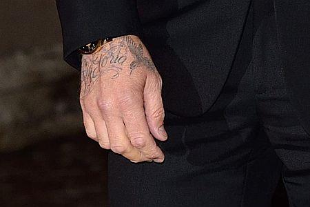 Penzionisani tridesetosmogodišnji fudbaler još ranije je ukrasio podlakticu imenom svoje supruge ispisanim hindu pismom, a odskora ima i novu tetovažu koja jednostavno kaže - Viktorija. Novi ukras kojim iskazuje ljubav prema svojoj supruzi nalazi se na njegovoj desnoj šaci.
