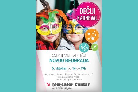 Za najmlađe posetioce tržnog centra Merkator na Novom Beogradu 5. oktobra, sa početkom u 17 časova, biće organizovan Karneval vrtića u okviru koga će mališani imati priliku da učestvuju u brojnim kreativnim radionicama, ali i da se zabave uz animatore koji oslikavaju lica.