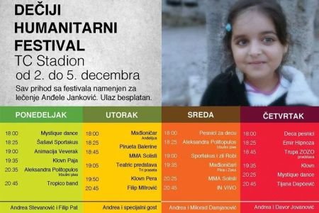 Kako bi pomogli Anđeli i njenim roditeljima, najbolji dečji animatori su se okupili i osmislili zabavan program za mališane koji će se svakog dana, od 18 do 21 čas, od 2. pa sve do 5. decembra, održavati u holu tržnog centra Stadion.