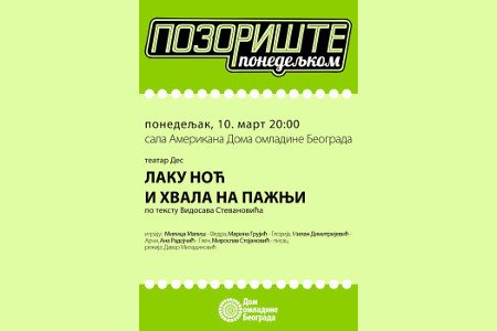 Predstavom "Laku noć i hvala na pažnji" predstaviće se pozorište Teatar Des, koje je deo AKUD "Španac" i bavi se pozorišnom dukacijom, animacijom, produkcijom i difuzijom. Repertoar ovog pozorišta sadrži predstave za decu i odrasle, a one su nagrađivane na brojnim festivalima amaterskih pozorišta i zapažene na brojnim gostovanjima.