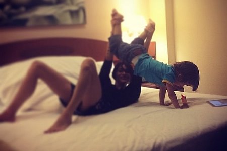 Ona je na svom Instagram profilu podelila fotografiju na kojoj pred spavanje uživa u igrama sa sinom Lavom.