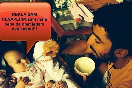 Sudeći po izrazu na bebinom licu kašom koju su joj roditelji spremili nije oduševljena, što je Biljana iskoristila da se našali.