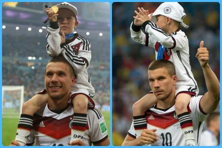 Naime, u okviru proslave pobede, Nemci su na teren izveli svoje porodice – devojke, supruge i decu, a za najdirljiviji prizor pobrinuo se Lukas Podolski, koji je stao na gol i odlučio da se poigra sa svojim sinom. Mališan je zauzeo stav i šutirao penal, a pri tome je pokazao da je od oca nasledio talenat za fudbal.