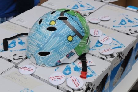 Deset najboljih radova preslikano je na zaštitne kacige za vožnju bicikla, skejtborda ili rolera, i uručeno je svojim malim autorima iz kragujevačkih predškolskih ustanova, kako bi se skrenula pažnja na značaj nošenja kacige.