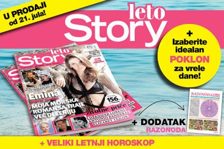 Dok uživate na plaži ili u lepotama leta u gradu, u ovom jedinstvenom izdanju pročitajte zanimljivosti iz života filmskih superzvezda Dženifer Lorens, Antonija Banderasa i Elizabet Tejlor. Za one posvećene modi, Story je spremio odličan letnji modni izveštaj, dok se u ulozi modela našla simpatična pevačica Ana Bebić. Diva pop muzike Emina Jahović samo za Story leto otkriva kako s porodicom uživa u vrelim letnjim danima i zašto joj prija pecanje. Beauty vodič u Story letu posavetovaće vas kako da se pravilno negujete na suncu, koja šminka je idealna za leto i koje su frizure aktuelne ove sezone. Osim ovih tema, čitaoci će imati priliku da pročitaju veliki letnji horoskop i da saznaju kako leto provode domaće i strane zvezde, ko su slavni kockari, koje su top destinacije za letovanje, kao i preporuke za letnja kulturna dešavanja. Za sve koji vole ukrštene reči i mozgalice, Story je pripremio pravu enigmatsku poslasticu na čak 18 strana.