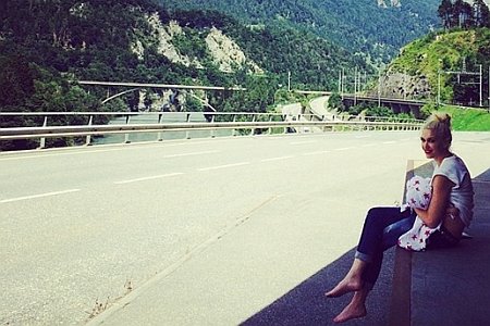 U pozadini fotografije imamo priliku da vidimo očaravajući pejzaž, a na Gveninom licu blista širok i radostan osmeh.