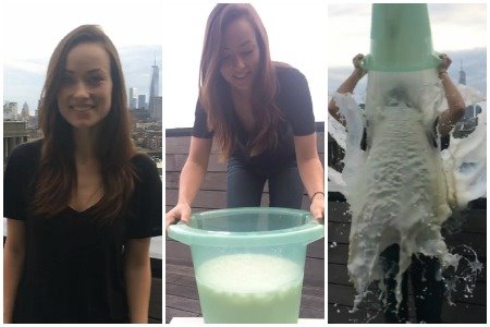 Tridesetogodišnja glumica je, pišu strani mediji, definitivno snimila možda i najbizarniji snimak polivanja u znak podrške Lu Geringovoj bolesti. Naime, Olivija objašnjava da nije mogla da nađe vodu, te se polila, kako kaže, sopstvenim humanim mlekom!