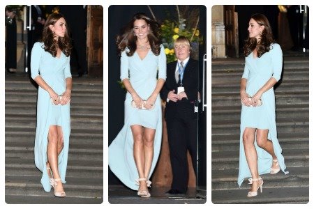 Kejt je za svečanost odabrala svetlo plavu toaletu sa potpisom Dženi Pekam u kojoj su do izražaja došle njene vitke noge, a nazirao se i trudnički stomačić.