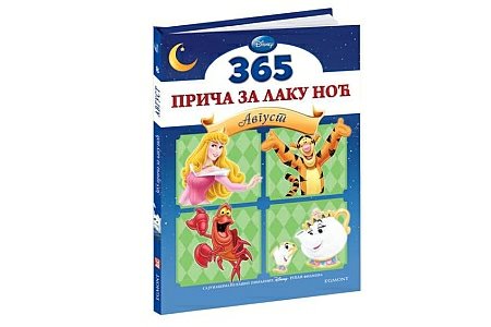Edicija "365 priča za laku noć" se sastoji od dvanaest knjiga nazvanih po mesecima i donosi priču za svaki dan u godini. U njima su predivne bajke sa dobro poznatim Diznijevim junacima u novim doživljajima. Posebno osmišljene za čitanje pred spavanje, ove petominutne priče će vas zabaviti, poučiti, nasmejati, kao i obeležiti važne datume u godini. Sedma knjiga nosi naziv "AVGUST".