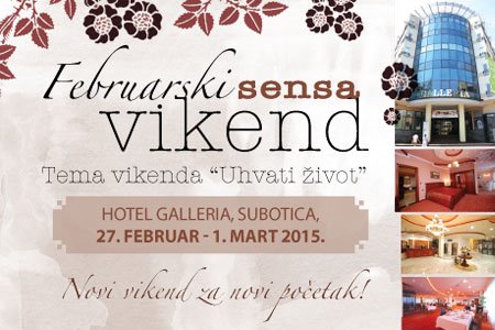 Februarski Sensa vikend biće održan saradnji sa turističkom agencijom Mediteraneo, u Hotelu Galleria, Subotica, 27. februar – 1. mart 2015. Galleria je jedini hotel iz Srbije koji se našao u godišnjem editorijalu preporuka New York Timesa za 2014.godinu, najviše zahvaljujući svom wellness centru. Trenutno uživa status hotela sa najvećom online zajednicom u Srbiji na društvenoj mreži Facebook, a nalazi se u centru Subotice i raspolaže sa 90 smeštajnih jedinica, 7 konferencijskih sala, 5 ugostiteljkih objekata, podzemnm garažom, fitness centrom i wellness centrom na 1600m2.